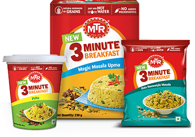 MTR 3 Minute Breakfast is the perfect answer to your Taste Vs Convenience puzzle on crazy weekday mornings. With our new range, a serving of hot, mouth-watering Indian breakfast is ready in just a few minutes! Just follow these steps: